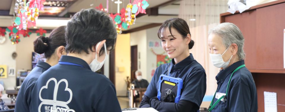 - 今後は初任者研修を受講し、いずれは介護福祉士の資格を取ることが目標です。それまでにたくさんの経験を重ね、多くの方と関わる中で、知識だけでは得られない部分を学んでいきたいと思っています。会社には研修の機会が多くあるのでできる限り参加して、スキルアップにも励みたいです。とにかく今は一歩一歩確実に学びを重ねていきたいと思っています。こうした経験は自分だけでなく、子どものサポートにもつなげられるので、これからも精一杯経験を積んでいきたいです。
