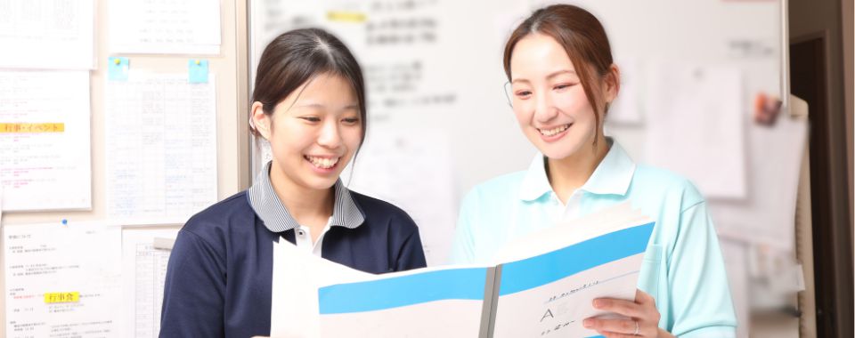 - 私が高校生の頃に、母方の祖母の介護が必要な状態となり、母が介護をする姿を間近で見ていたのがきっかけでした。私はもちろん母もそれまで介護の経験はまったくなかったので、何をしなければいけないのか、これからどのようにしていけばいいのかを一から調べ、試行錯誤しながら母の手伝いをしました。祖母は、私が手伝いに行くといつも「ありがとう」とにこにこしながら言ってくれ、「誰かの役に立てることがうれしい」「もっと力になりたい」という思いが強くなり、福祉の大学に進みました。大学は4年間、座学や実習を通して介護を学び、介護福祉士の資格を取得して、今の職場に就職することができました。
