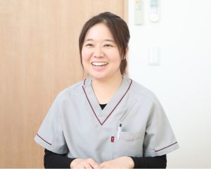 - 将来の仕事についていろいろと悩んでいた20歳くらいのころ、自分のことを可愛がってくれていた祖母の姉が体調を崩してしまいました。母が時折様子を見に行くのに私もついて行き、お世話をしている姿を見ているうちに、介護というものに興味を持つようになりました。 その後、まずは介護の資格を取りたいと思い、ヘルパー2級を取得して特別養護老人ホームに入職しました。しかし結婚を機に働く環境を見直し、夜勤のないデイサービスに転職をすることに。そのときに当施設に入職し、以来13年勤務しています。その間に、働きながら介護福祉士の資格を取得しました。