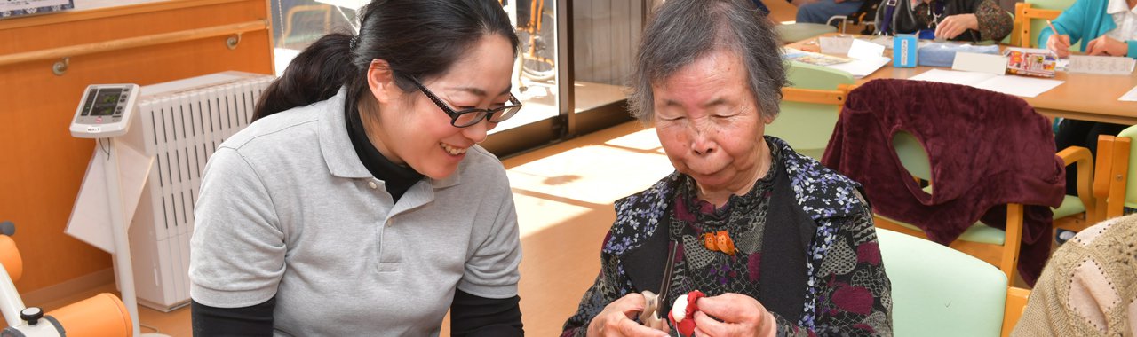 - 介護職としてデイサービスで働く毎日です。入浴介助をさせていただくことが多いのですが、利用者様に「気持ちよかった」と喜んでいただけるように、心身の状態や生活習慣を把握し、一人ひとりに寄り添った介助を心掛けています。利用者様の中には一人暮らしの方もいらっしゃり、自分では手の届かない背中や足先をしっかり洗って差し上げたり、声を発してもらえるようにお話のきっかけをつくったりと気配りは大切です。また、スーパー銭湯のように広めのお風呂なので、体を洗う介助はほどほどでよいという方には、ゆったりくつろいでいただく時間を取るようにしています。