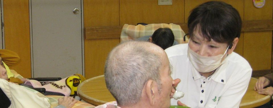 - 現在は特別養護老人ホームの介護職員として勤務しています。要介護度3~5の重度の方が対象で、食事介助、トイレ介助、おむつ交換、入浴介助、レクリエーションなど、介護全般の業務に携わるほか、夜勤業務も行っています。事務職の経験から、認知症の方への対応やコミュニケーションの取り方など、いくつかは生かせているところがあります。一方で、介護現場に立つことで、利用者様一人ひとりに合ったきめ細やかなケアの大切さを実感。まだまだ勉強しなければならないことがたくさんありますが、日々成長できるのがこの仕事の醍醐味だと感じています。