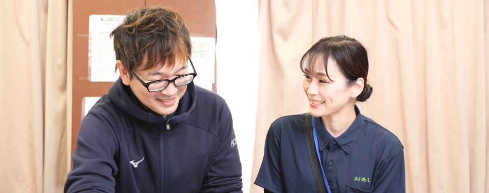 - 一番は、未経験で知識のない私でも「楽しい1日だった!」「会いたかった!」と笑顔を見せてくれる利用者様の存在です。そして、尊敬する上司、先輩に恵まれ、とても良い職場で働きながら学べている事がやりがいです。働き始めた当時は、まったくの未経験でしたが、先輩方がいろいろな助言をしてくださったり、休憩時間でも気軽に声をかけてくれて仲良くしていただいたり、精神的にとても励みになりました。ときには「やってみる?」と挑戦のチャンスをくださり、何でもチャレンジしたい派の私にとって、やりがい満点の職場です!