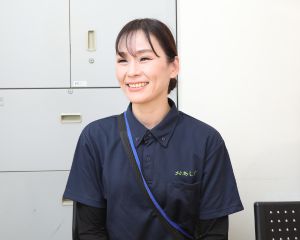 - 通所される要支援・要介護の方々の送迎、食事介助、入浴介助、トイレ介助、レクリエーション、談話などのサポートをしています。勤めはじめて1年になりますが、未経験でのスタートだったので、当初はすべてに戸惑いました。歩くのが不自由な方の介助は、どこに手を差し出せばいいのか分からなかったですし、コミュニケーションを取りたくても認知症の方に対しては症状に関する知識がまったくなかったため、どう接していいか戸惑うばかりでした。その中でも心がけた事は、とにかく利用者様に安全に過ごしていただけるようサポートすること。目線を合わせて笑顔で接すること。今でも毎日が勉強ですし、失敗の繰り返しですが、利用者様が安全で楽しい1日だったと思っていただける事が一番だと思っています。分からないことは先輩に何でも聞いて、力になってもらっています。