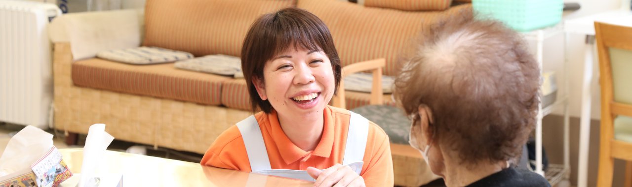 - 一緒に働いている仲間との関係がとても良いので、恵まれた環境だと常々感じています。私には現在小学生の子がいるのですが、スタッフには子育てを経験された方たちが多いので、子どもの発熱などで急なお休みになったときも快く対応してくださり本当に感謝しています。また、休憩中には子育てに関する悩みなども相談し、アドバイスをもらうこともあります。お互い仲間を思いやり、悩んでいる職員には手を差し伸べて助け合える環境だと思います。 利用者様のケアについては、終礼や毎月1回のミーティングで話し合い、情報共有をすることでより良いケアを目指しています。