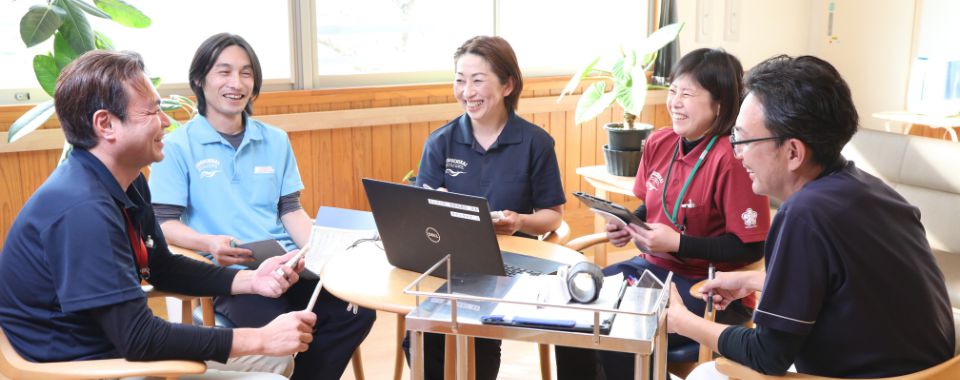 - いつかはケアマネジャーの資格を取得できたら…と思っていますが、今は利用者様の話をじっくり聞き、一人ひとりが笑顔になれ、安心して過ごせる環境づくりに励んでいきたいです。また、多職種ならではの強みを生かし、利用者様の伝えたいことや、して欲しいことを理解し、これまで以上により良いサポートができるようにしたいです。夫が病気になった経験を職員にも共有し、サポートに活用できたらとも思っています。そして何より体力づくりに尽力しないといけません(笑)。