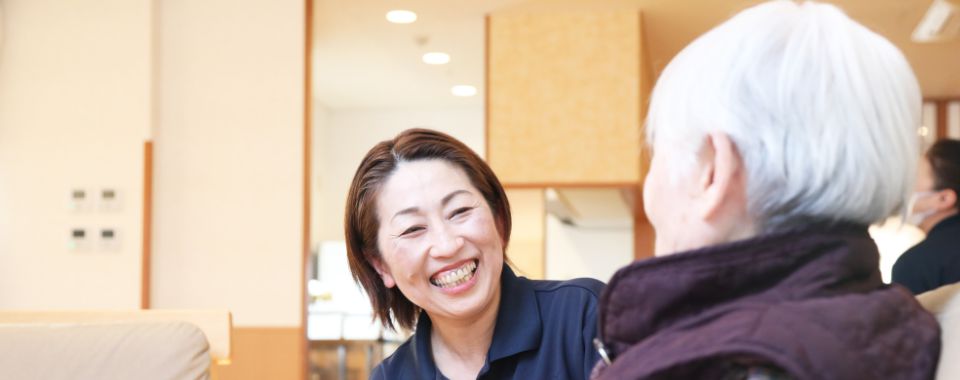 - この職場は未経験からでしたが、職員さんに丁寧に教えていただいたことはもちろん、子どもの相談など何でも話を聞いてくださり、とても馴染みやすい環境でした。そんな中、夫が病気になり、働くことができなくなったときにでも力になってくれ、感謝の気持ちしかありません。また、見守りカメラを設置後、事故の未然防止や早期発見につながり、利用者様が安心・安全に生活できると同時に、私たち職員の負担軽減になっているのもありがたく感じています。職場や周りのサポートが充実している環境だからこそ、今でも楽しく、これからも頑張っていこうと思える理由です。
